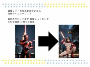 d_526903【フル漫画無料!!】戦隊レッドの写真を見ていたら 突然タイムリープ!? 異世界でビッチ女が 戦隊レッドとしてエロを武器に 戦った結果////
